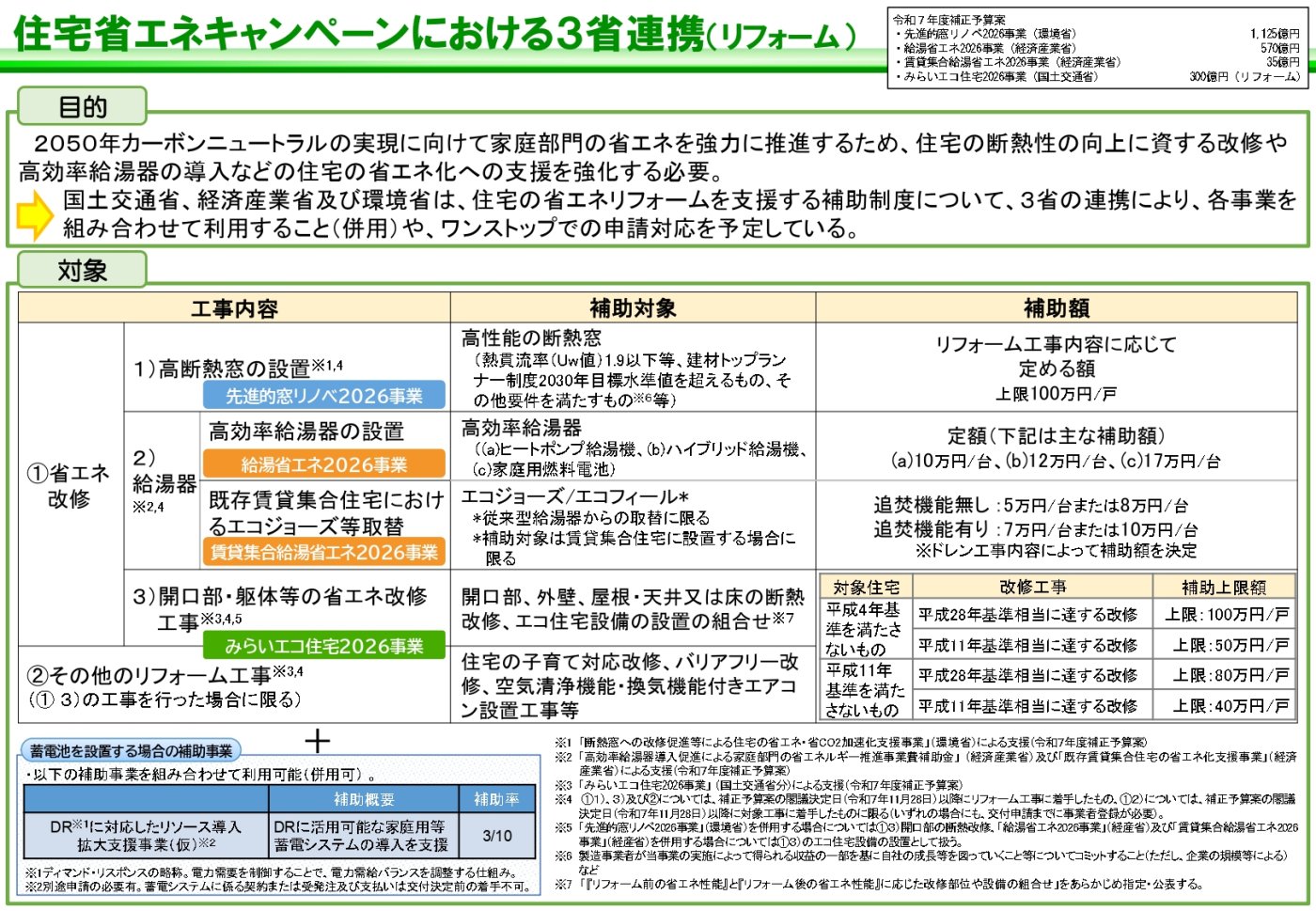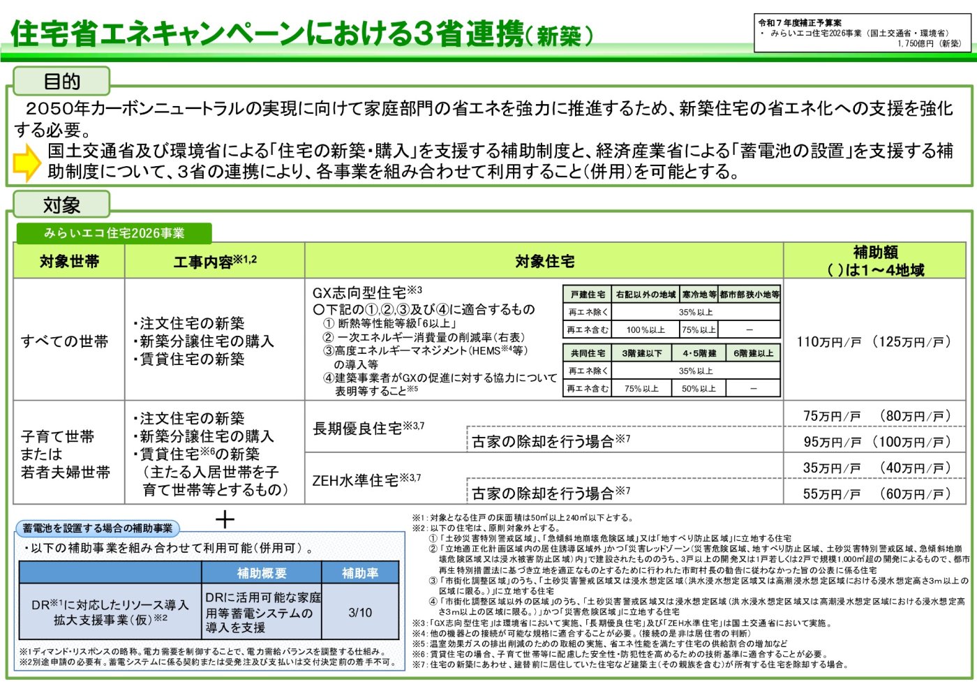国土交通省・経産省・環境省の3省連携による「みらいエコ住宅2026事業」が始動されます。